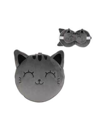 Total Gift Μαξιλαράκι Ταξιδίου και Μάσκα Ύπνου Γκρι Γάτα