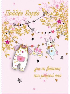Ευχετήρια Κάρτα Βάφτισης Sweet Dreams Ρουχαλάκια Ροζ