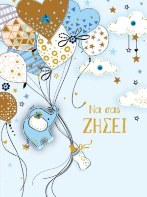 Ευχετήρια Κάρτα Βάφτισης Sweet Dreams Μπαλόνια Σιέλ