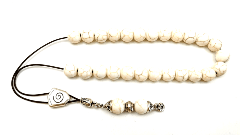 Κομπολόι από χαουλίτη,μέγεθος χάντρας 10mm,στολισμένο με μεταλλικά