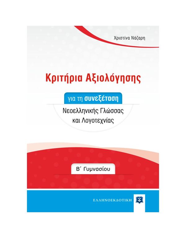 Το βιβλίο Κριτήρια Αξιολόγησης για τη συνεξέταση Νεοελληνικής Γλώσσας και Λογοτεχνίας στη Β΄ Γυμνασίου αποτελεί αναγκαίο συμπλήρωμα της έκδοσης Εκθέσεις για τη Β΄ Γυμνασίου.