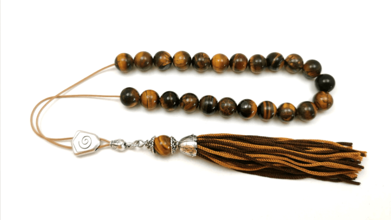 Κομπολόι από μάτι τίγρης,μέγεθος χάντρας 10mm,στολισμένο με