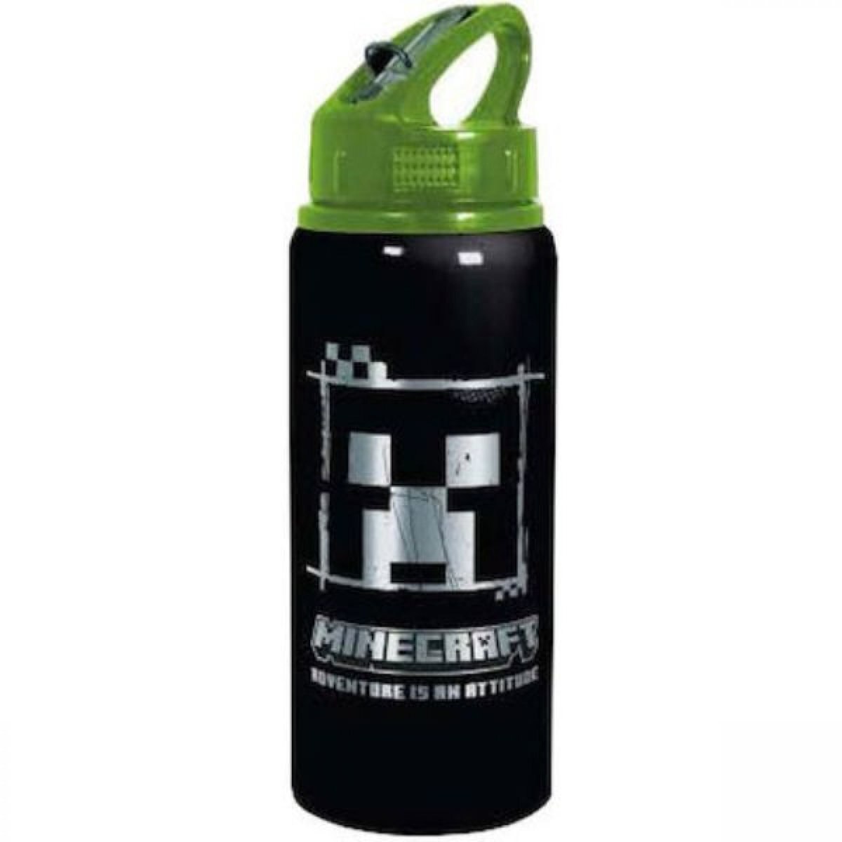 Παιδικό Παγούρι Minecraft Αλουμινίου με Καλαμάκι Μαύρο 730ml
