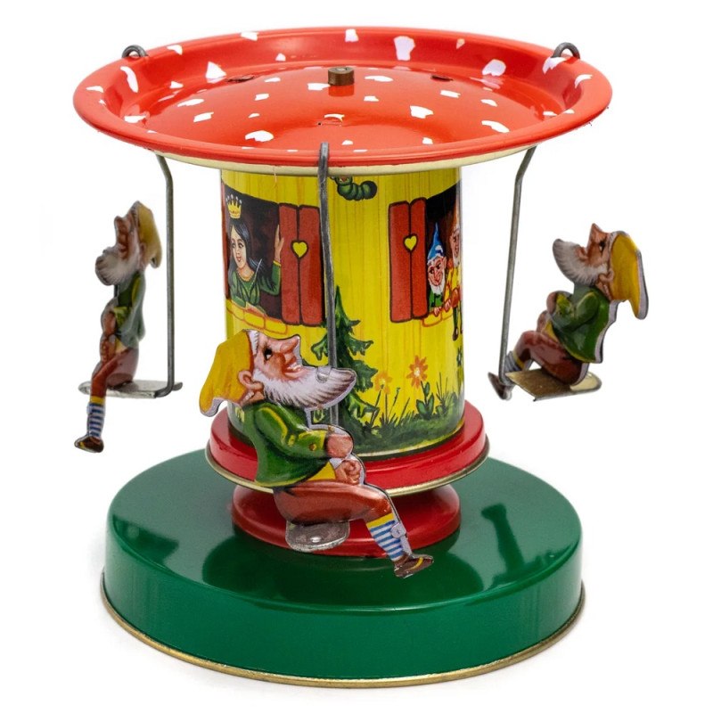 Ρετρό τσίγκινο κουρδιστό καρουζέλ Χιονάτη