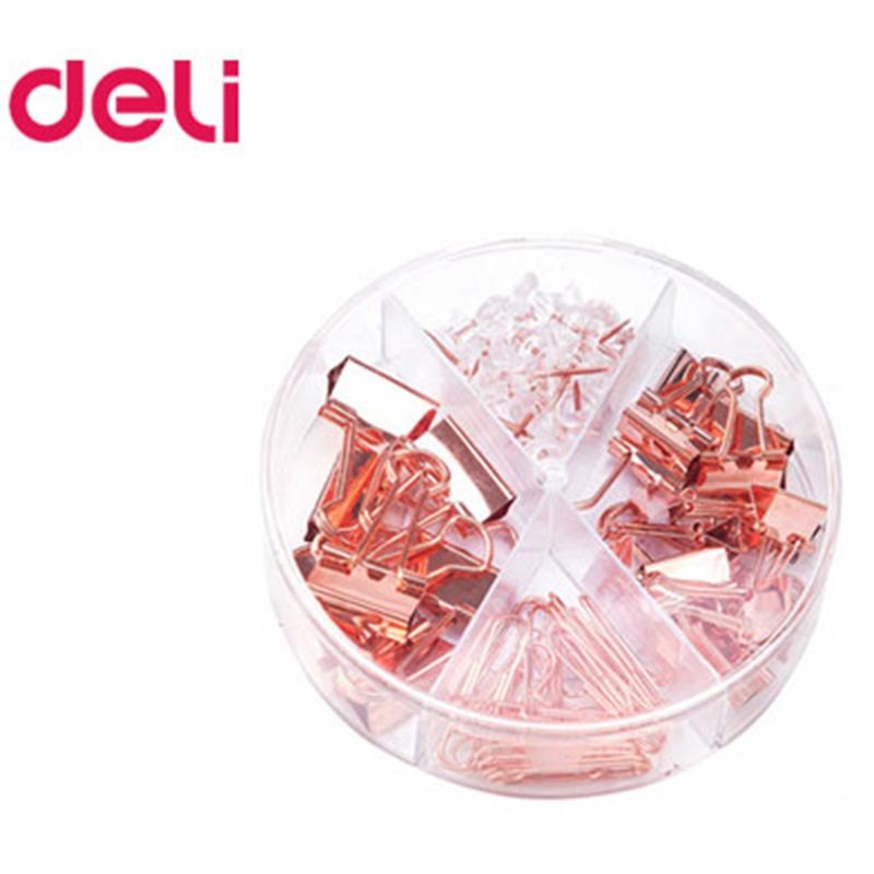 πιάστρες καρφίτσες και συνδετήρες σε απόχρωση ροζ χαλκου.