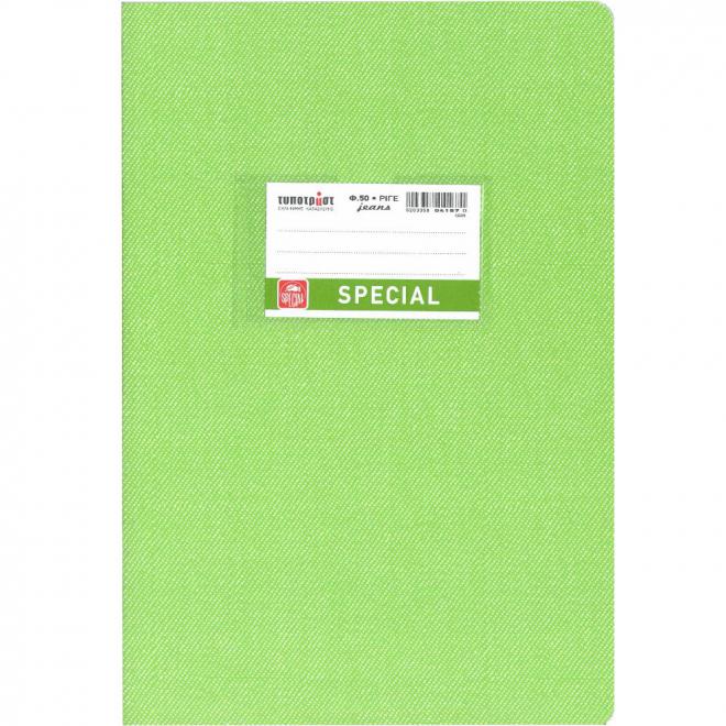 – Σειρά: Τετράδιο jeans Special– Βάρος: 180 gram.– Διαστάσεις: Υ:25 Π:17 cm.– Βάρος χαρτιού: 70gr– Χρώμα: Λαχανί– Φύλλα: 50
