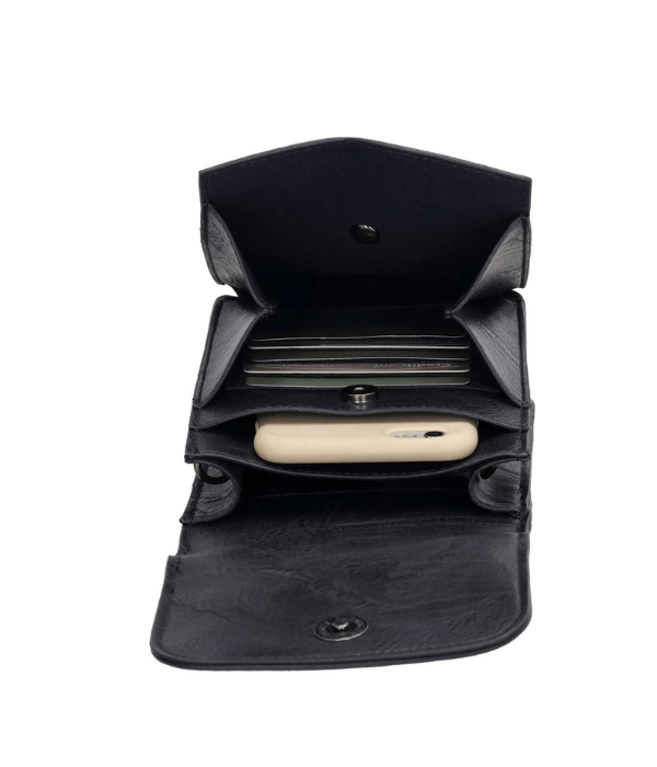 Το εσωτερικό είναι έξυπνα οργανωμένο με τρεις θήκες, οπότε δεν χρειάζεται να ανησυχείτε μήπως γρατσουνίσουν τα κλειδιά το τηλέφωνό σας. Πρακτική και κομψή, αυτή η θήκη τηλεφώνου είναι απαραίτητη για όποιον θέλει να έχει τα πάντα οργανωμένα.
