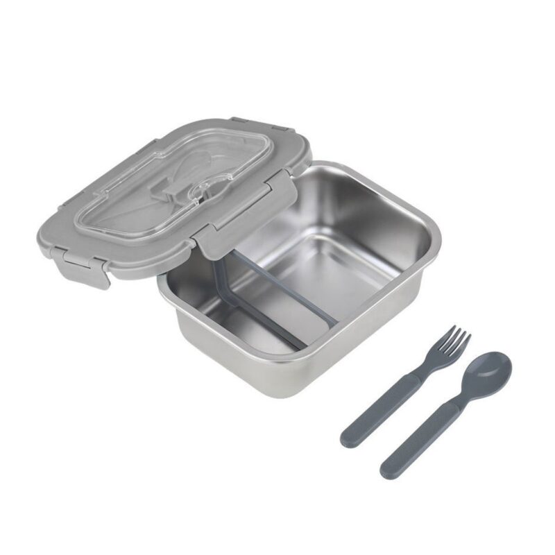 Φαγητοδοχείο τύπου bento box με καπάκι από την εταιρία εstia. Είναι κατασκευασμένο από ανοξείδωτο υλικό με το καπάκι να είναι κατασκευασμένο από πλαστικό υλικό με δακτύλιο σιλικόνης για καλύτερη στεγανοποίηση. Περιλαμβάνεται κουτάλι, πιρούνι σε ξεχωριστή θήκη μέσα στο καπάκι. Συνολικής χωρητικότητας 1.2lt. Ιδανικό για το μεσημεριανό, τα φρούτα ή το σνακ σας καθ’ όλη τη διάρκεια της ημέρας. Κατάλληλο για φούρνο μικροκυμάτων αν αφαιρεθεί το καπάκι.