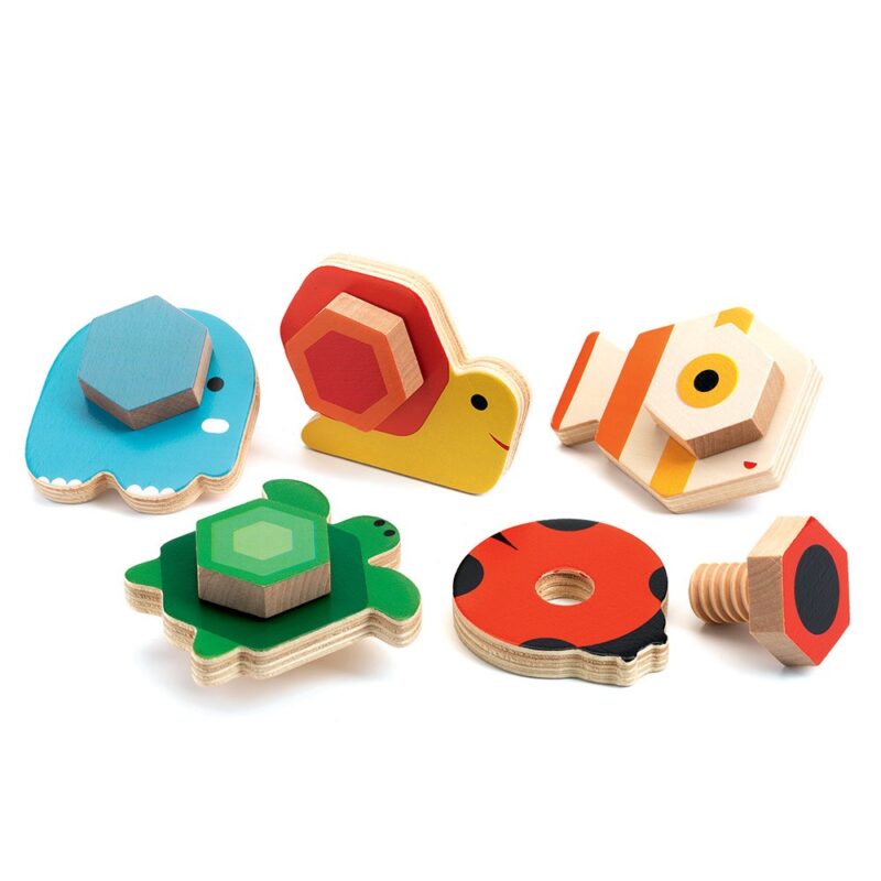 Τα μικρά ζωάκια χρειάζονται τη βοήθεια μας για να ολοκληρωθούν! Συναρμολογήστε τα ζωάκια, βρίσκοντας ποιο κομμάτι τους ταιριάζει και βιδώνοντας το στη θέση του. Το εκπαιδευτικό παιχνίδι της εταιρίας Djeco βοηθά στην ανάπτυξη της λεπτής κινητικότητας και στον καλύτερο συντονισμό χεριού – ματιού. Περιλαμβάνονται 5 ξύλινες φιγούρες ζωάκια με τα 5 ξύλινα βιδωτά κομμάτια που τους αντιστοιχούν. Κατάλληλο για παιδιά ηλικίας 18 μηνών και άνω. Διαστάσεις συσκευασίας: 18,5 x 14 x 4 εκατοστά. Προϊόν από υλικό πιστοποιημένο με FSC Mix (μείγμα υλικών από δάση πιστοποιημένα με FSC, ανακυκλωμένα υλικά ή / και ξύλο ελεγχόμενο από FSC)