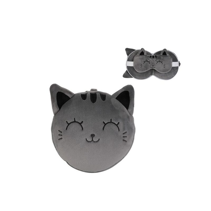 Total Gift Μαξιλαράκι Ταξιδίου και Μάσκα Ύπνου Γκρι Γάτα